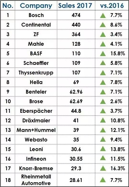 German auto parts business sales TOP18 list