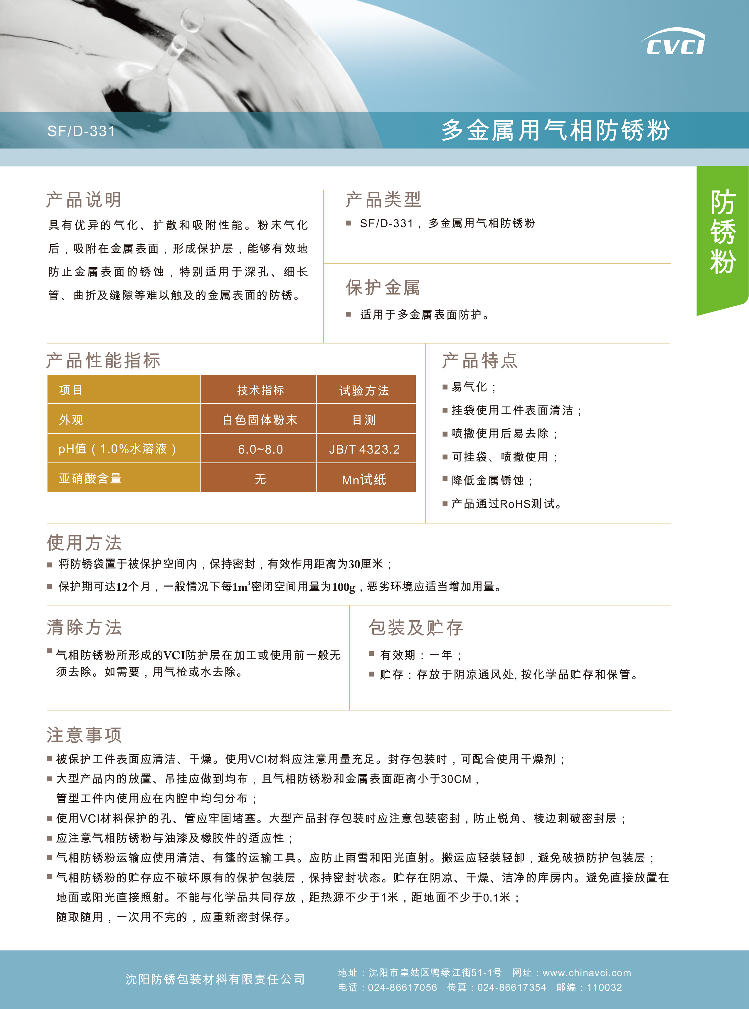 產(chǎn)品說明:多金屬用氣相防銹粉,具有優(yōu)異的氣化、擴散和吸附性能。粉末氣化后,吸附在被保護金屬表面,形成保護層,能夠非常有效地防止金屬表面的銹蝕,特別適用于深孔、細長管、曲折及縫隙等難以觸及的金屬表面的防銹。