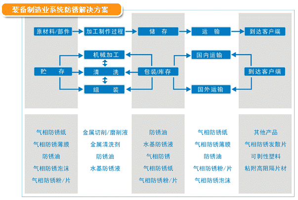 裝備制造業(yè)從原材料貯存,到加工制造、裝配、運輸,每一個環(huán)節(jié)都會面臨銹蝕問題。該領域對于防銹產(chǎn)品具有需求范圍廣、個性化要求高、技術支持需求明顯等特點。我們按客戶材質(zhì)、工藝和儲運要求,進行系統(tǒng)的防銹防護解決方案。已成功完成小到微型電機、大至成套工程機械的防銹防護方案設計和多年驗證工作。為我國裝備制造業(yè)發(fā)展保駕護航!